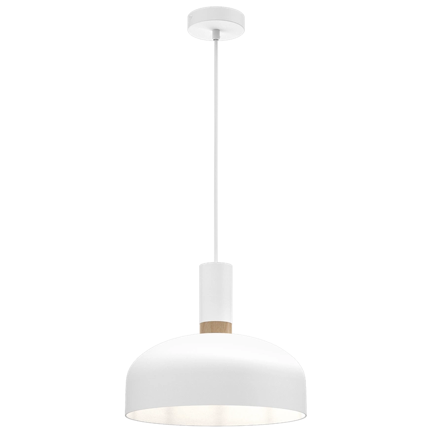 - lampy wiszącej w białym kolorze z drewnianymi detalami, z jednym źródłem światła MLP8380